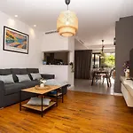 Ensuring a comfortable stay, the in-room amenities include a stone fireplace, as well as a TV set and comforts like ironing facilities and an air conditioner. The accommodation is also furnished with a sofa. This apartment is equipped with a bathroom that features hairdryers and bath sheets. Furthermore, a walk-in shower, a separate toilet, and a bath is available.